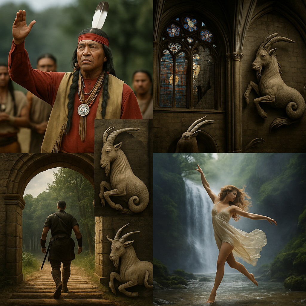 Capricorn, traditionally ruled by Saturn, is the sign of discipline, ambition, and mastery over time. Represented by the mythical Sea-Goat—half goat, half fish—it symbolizes the union of earthly striving and deep, emotional wisdom. The goat climbs patiently toward the mountain peak, while the fish tail recalls ancient roots and intuitive depths. Capricorn’s journey is one of endurance, structure, and the slow realization of greatness through dedication and inner integrity.